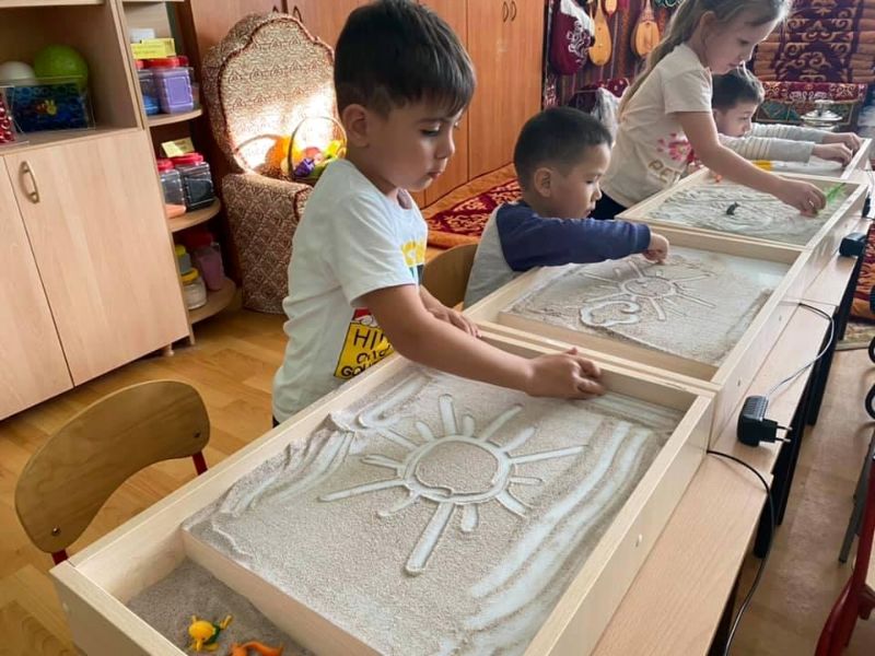 Біздің балабақшадағы инновациялық технологиялардың бірі — құм терапиясы.