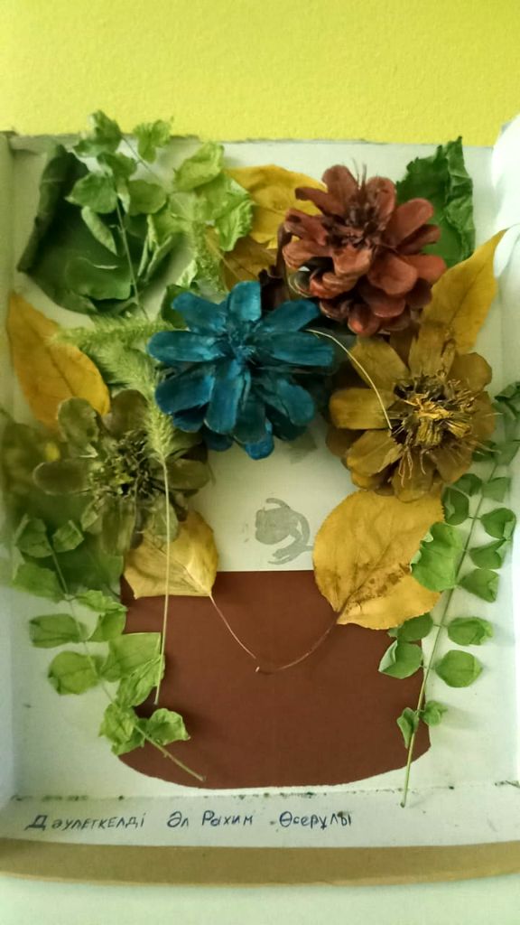 Бөбекжайымызда "КҮЗ - СЫЙЫ" атты табиғи материалдардан жасалған қолөнер көрмесі өтті. Бұл шара табиғатпен танысу, қоршаған орта туралы білімдерін жинақтау, балалардың шығармашылық қабілетін дамыту, сонымен қатар ата-аналарды балабақшадағы тәрбие үрдісіне тарту мақсатында өткізілді. Шараға ата-аналар белсене қатысты, балаларымен бірге табиғи материалдардан ерекше әдемі, ерекше қызықты қолөнер жасады. Осылай ата-аналардың бөбекжай өміріне белсенді қатысуы, олардың үйдегі бірлескен шығармашылық қарым-қатынасы, барлық отбасы мүшелерін біріктіреді, бір-біріне жақын адамдар бір-бірін жақсы көретін, түсінетін және бағалайтын отбасында жақсы қарым-қатынас қалыптасуына ықпал етеді. Баласымен шағармашылық жұмыс жасап, көрмеге қатысқан барлық ата-аналарға алғыс айтамыз!