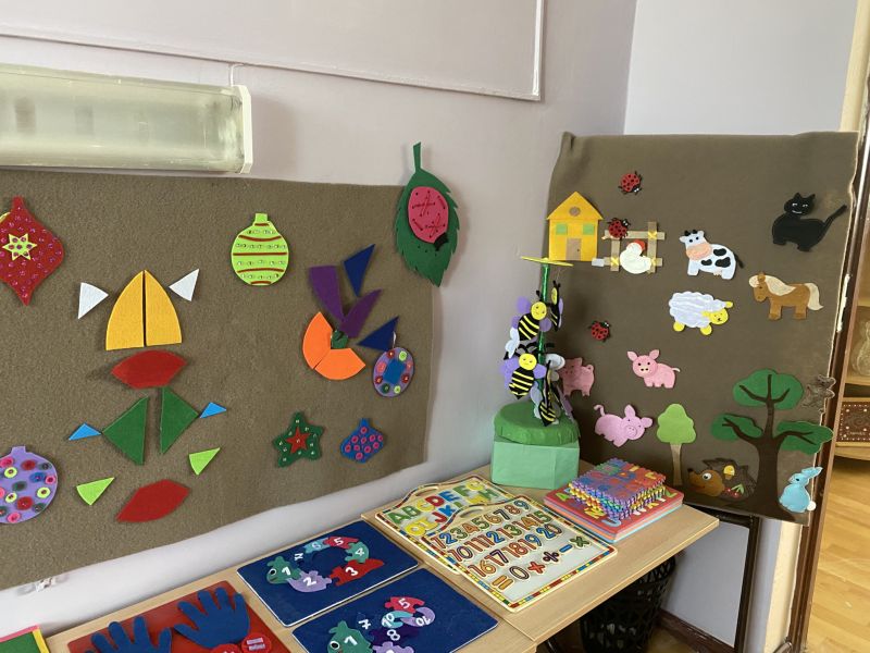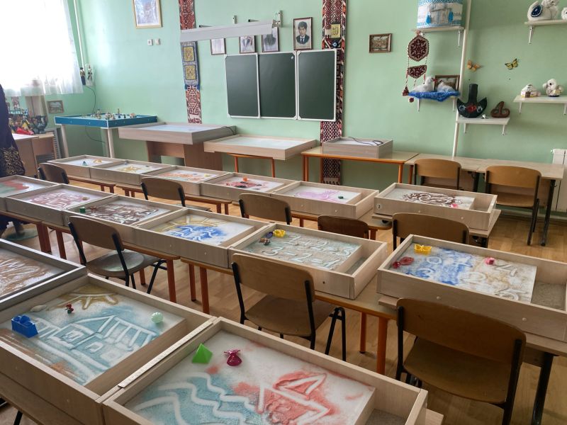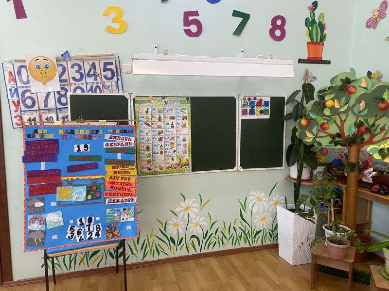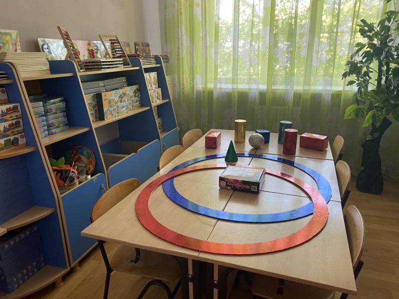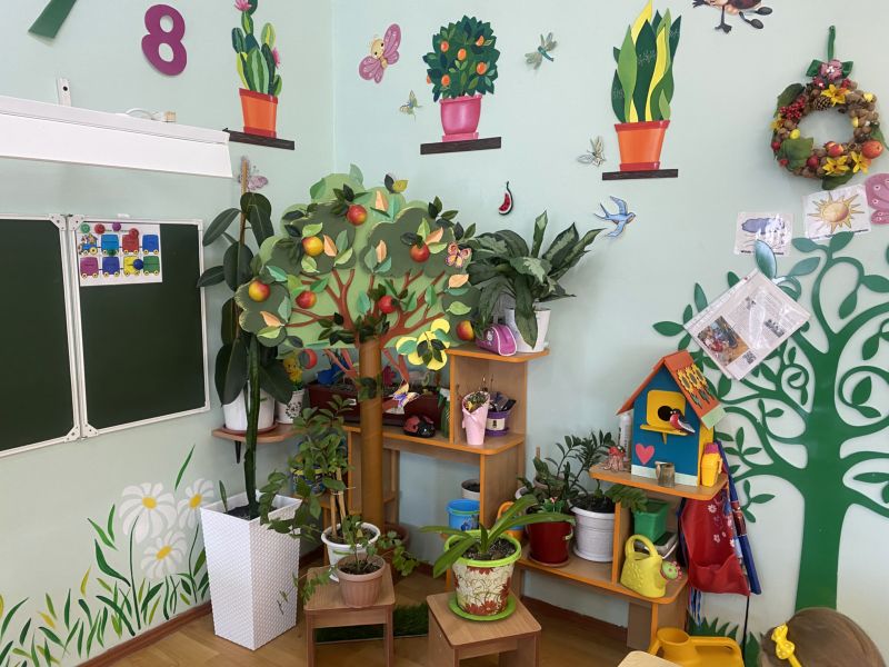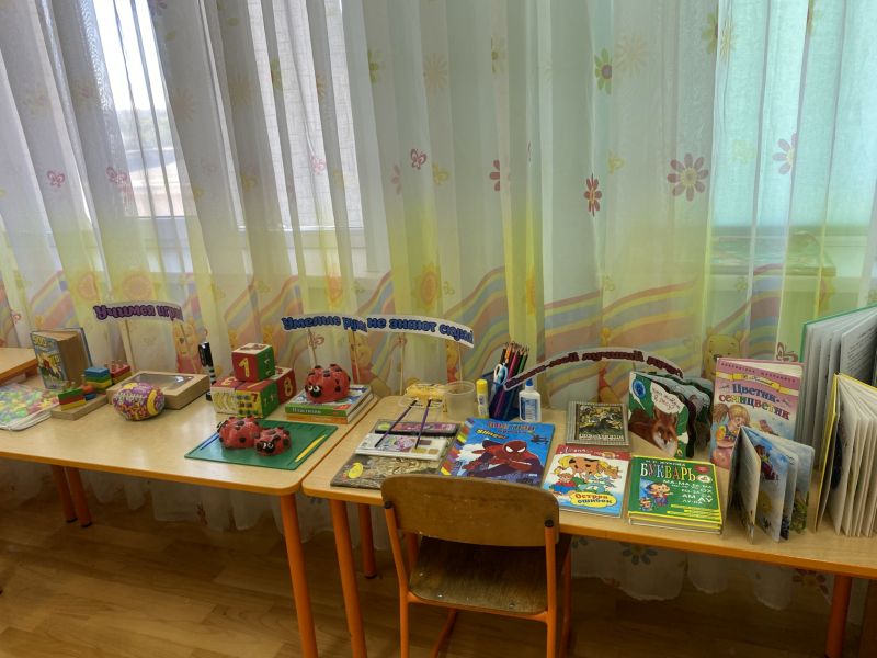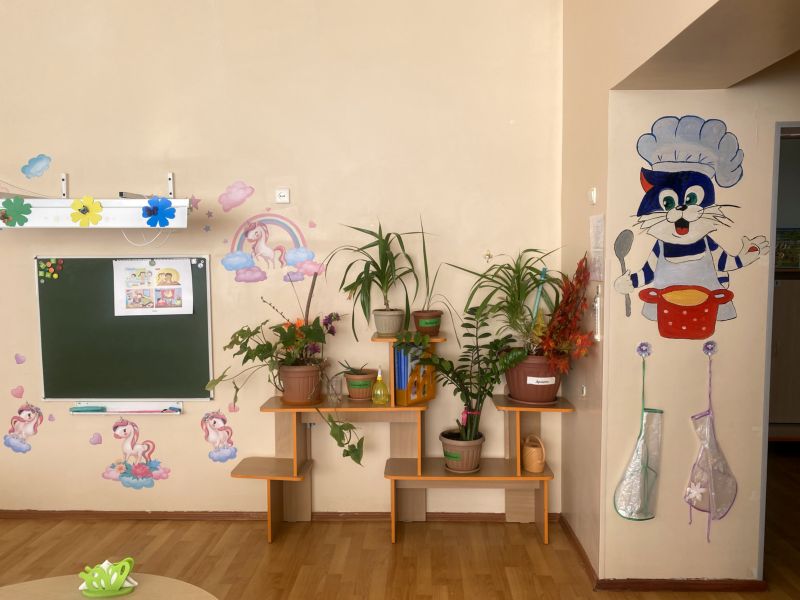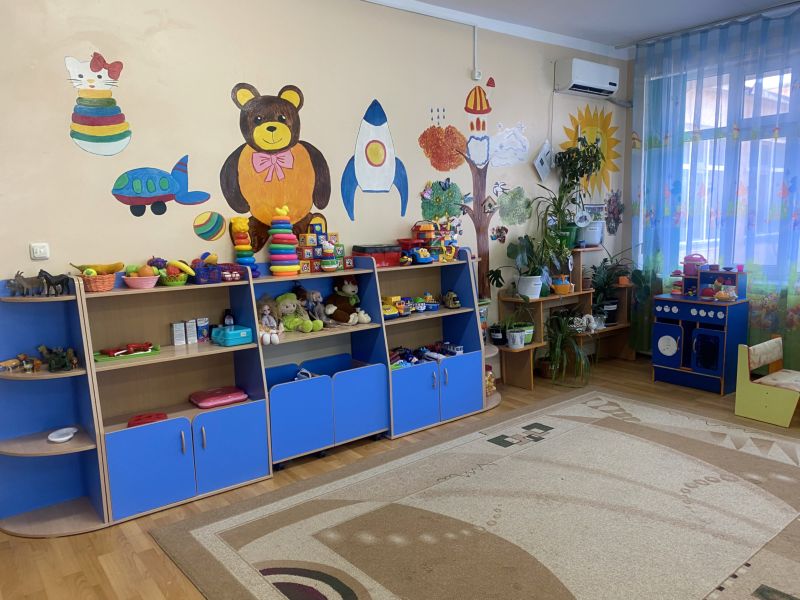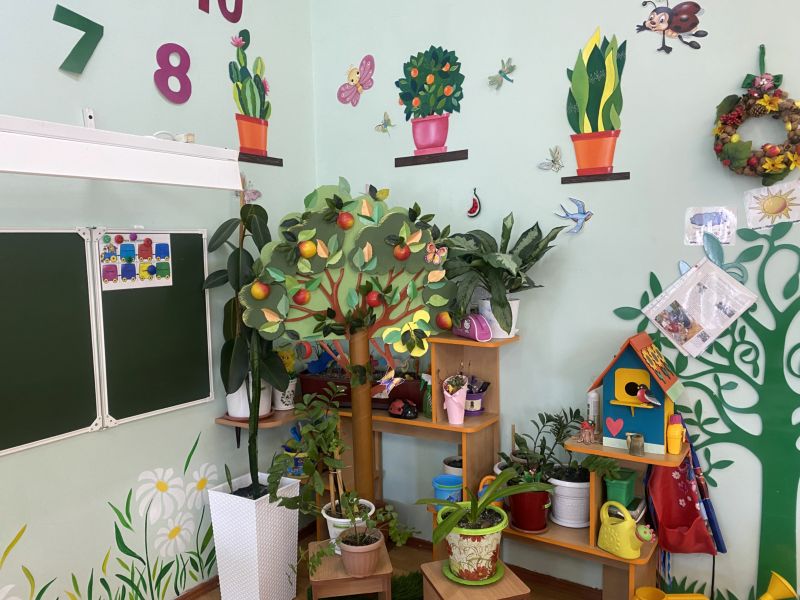Ашық едендер мен қабырғалар кеңдік әсерін береді. Кілем, жиһаз жиегі, бір түсті схемада жасалған. Балалар үшін пәндік-дамытушылық ортаны құра отырып, топтағы барлық кеңістік белгілі бір аймақтарға немесе орталықтарға бөлінген: